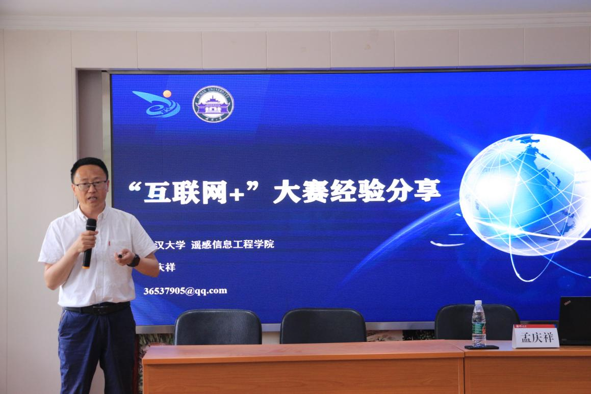 为提升同学们的“互联网+”相关赛事备赛技能,激发广大学子参与科创竞赛的热情,4月21日下午,由tyc1286太阳成集团、创新创业公司、楚才公司联合举办的第5期“双创讲坛”在公司一楼会议室圆满举行。本次讲座以《“互联网+”大赛经验分享》为主题,由武汉大学金牌讲师、第八届“互联网+”大赛国家金奖项目指导教师孟庆祥主讲,创新创业公司、tyc1286太阳成集团相关领导、老师,各“互联网+”参赛团队师生代表参加讲座。