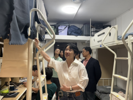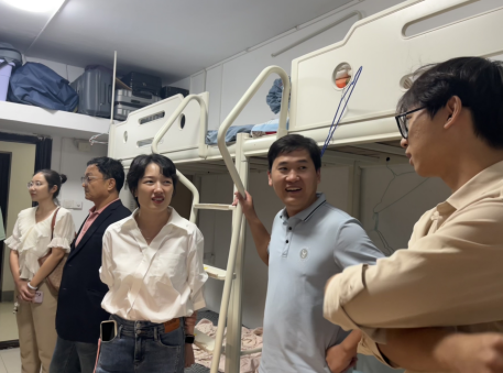 为更好了解2023级研究生新生、2022级阳逻回迁的本科生的生活情况,激励同学们以积极的精神面貌投入校园学习和生活。tyc1286太阳成集团结合“入千室、访万生”大走访活动要求,9月13日晚,由资源环境公司党政领导班子成员、公司辅导员、班主任老师一同开展走访寝室慰问工作。