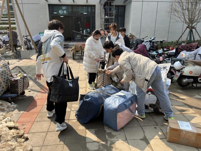 此次搬迁工作涉及多个住宅片区、157名员工,公司安排多趟货车,分专业、分时段为员工行李搬运保驾护航。同时,员工志愿者一对一帮助搬迁员工,跟随车辆来到原宿舍,协助同学打包行李、搬运物品,确保每一件行李都能安全到达新宿舍。