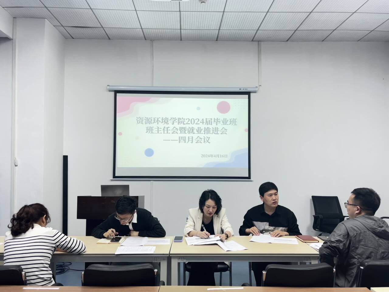 4月16日下午,在五楼会议室召开2024届毕业生就业工作推进会。公司党委副书记李岚、毕业班班主任、辅导员韩鹏振参加会议。