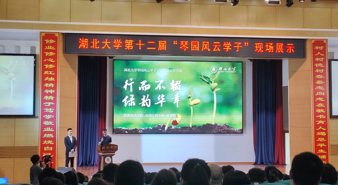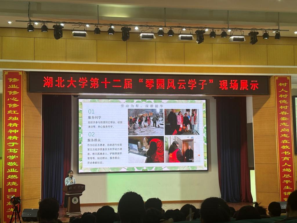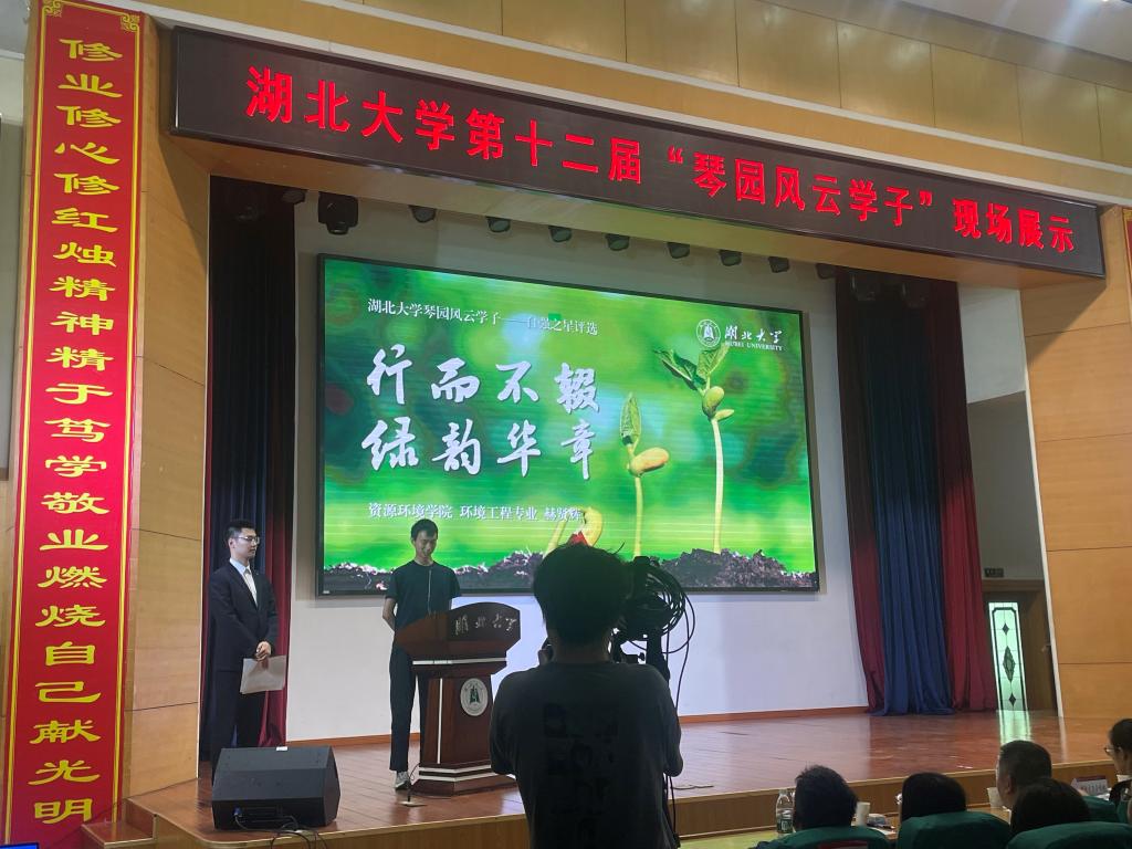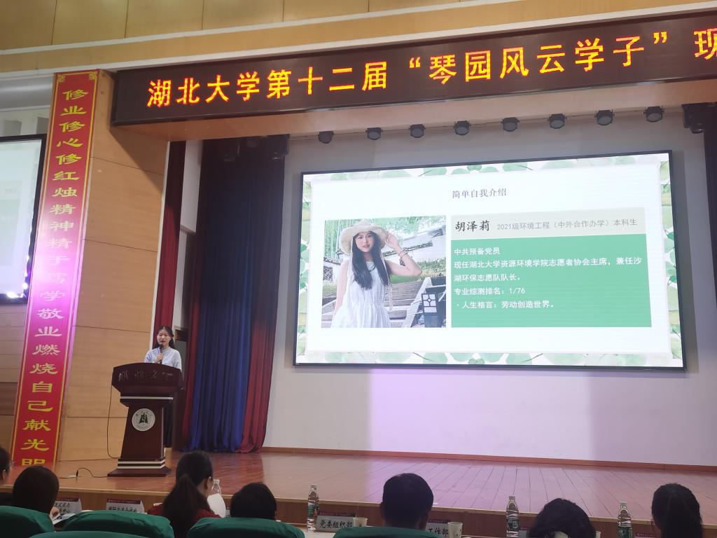2021级环境工程(中外合作)专业胡泽莉同学以“劳动为犁,深耕韶华”为主题进行展示。她现任tyc1286太阳成集团志愿者协会主席、沙湖环保志愿队队长,多次参与志愿服务活动,不仅在志愿服务方面表现突出,学习成绩同样名列前茅,展现了资环学子风采。