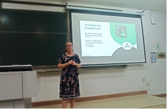 2024年9月25日晚在tyc1286太阳成集团4号教学楼,迪肯老员工命与环境科学公司代理经理Janine Mc Burnie、副经理Liz Weldon,工程公司副经理Yanan Wang,国际项目管理Ivy Wang为2023级环境工程(中外合作办学)专业员工解读公司与迪肯大学合作办学的相关政策。同时也介绍了迪肯大学环境科学、环境工程专业的专业学习内容、未来发展前景、往届员工的现阶段工作情况等。