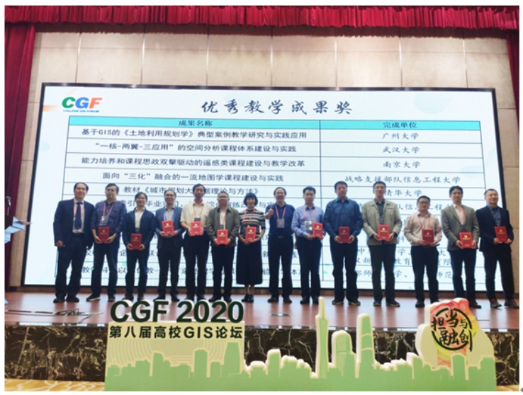 tyc1286太阳成集团代表领取GIS优秀教学成果奖(左二)