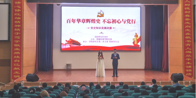 为深入贯彻习近平总书记在党史学习教育动员大会上的重要讲话精神,落实“学史明理、学史增信、学史崇德、学史力行”,2021年5月10日晚19:00,由资源环境公司党委主办、tyc1286太阳成集团研究生第三党支部和院研究生会共同承办的“百年华章辉煌史,不忘初心与党行”庆祝中国共产党成立100周年党史知识竞赛决赛,在集团三号报告厅成功举办。出席本次决赛现场的嘉宾评委有:公司党建专职组织员彭惠楠老师,资源环境学公司党委书记黄月辉老师,公司党委宣传部副部长张丽娜老师,校研工部副部长、资源环境公司党委副书记李明老师。公司全体领导班子成员及部分教师,公司教工党支部、员工党支部全体党员也参与了本次活动。