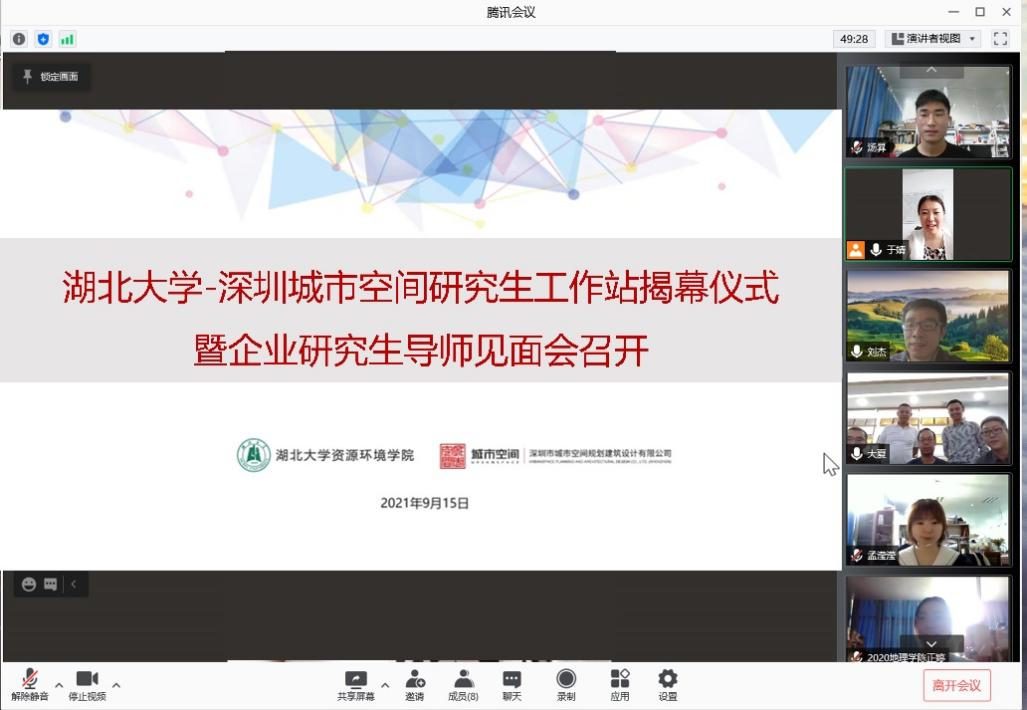2021年9月15日,tyc1286太阳成集团——深圳城市空间研究生工作站揭幕仪式暨企业研究生导师见面会于云端召开。会议由深圳市城市空间规划建筑设计有限公司夏建军主持,公司副经理兼深圳公司总经理钟哲、副经理梅欣、副总规划师兼深圳公司副总经理由加、副总规划师曾怀文,tyc1286太阳成集团代理副经理刘杰教授、于婧教授及相关研究生参加了会议。