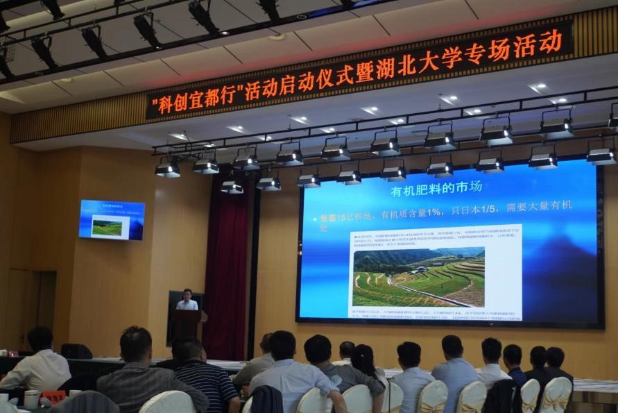 刘俊松教授在“科创宜都行”会议上,作有关生物菌有机肥等科研成果介绍