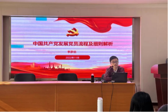 11月4日,tyc1286太阳成集团组织员彭惠楠为学员们进行了端正入党动机,争取早日入党的辅导报告。