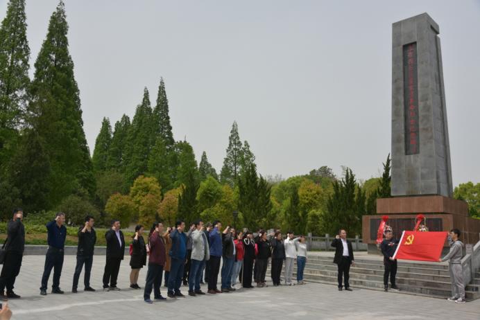 当天上午11时,公司全体教职工抵达瞿家湾湘鄂西革命根据地旧址。仲春时节,湘鄂西苏区瞿家湾革命烈士陵园庄严肃穆,在革命烈士纪念碑广场,老师们怀着无比崇敬的心情,整装列队,向湘鄂西烈士纪念碑敬献花篮,公司党委书记黄月辉、经理彭宇仔细整理花篮缎带,全体教职工集体三鞠躬,向烈士默哀,并绕碑一周,瞻仰纪念碑,追思缅怀革命先烈。随后在高耸的纪念碑见证下,公司党委书记黄月辉领誓,全体党员面对鲜红的党旗,庄严地举起右拳,重温入党誓词,坚定理想信念,坚守初心使命。