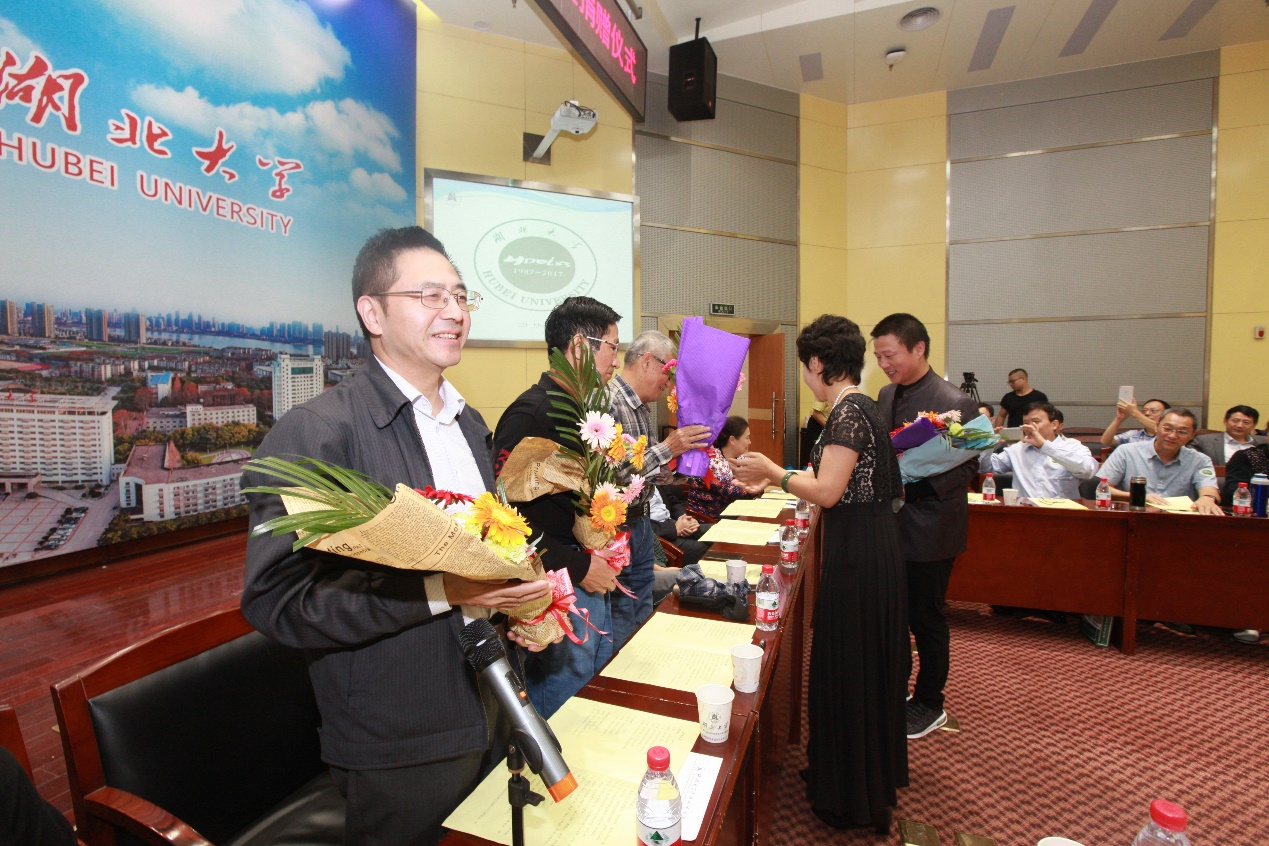 随后,员工代表们还将大家精心准备的礼物以及鲜花赠予当年的各位老师,铭谢师恩。在师生自由发言的环节,员工们纷纷回忆分享往昔求学与实习期间的趣事,共同回顾了在校学习和生活的点点滴滴,互相交流了自己目前的发展情况,表达了对母校、对昔日班集体的深厚感情,还通过写诗作词的方式表达了对老师的感谢之情。员工代表陈迪和还将自己精心创作的画作赠予公司,寓意“山常青,水长流,人常在,情常驻”,表达了对全体地理系83级员工们的美好祝愿。