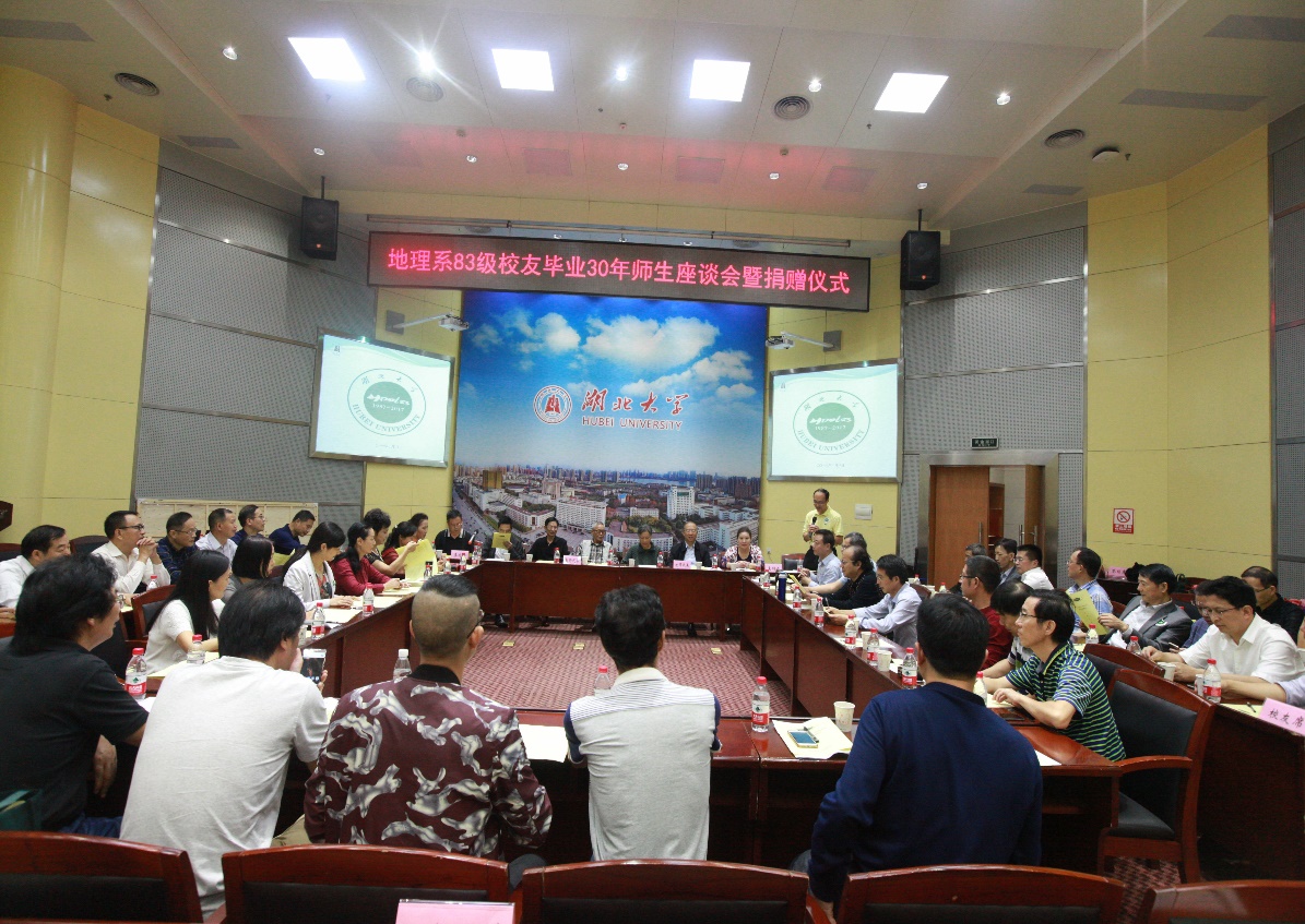 10月3日,在tyc1286太阳成集团建校86周年校庆日当天,tyc1286太阳成集团迎来了离“家”三十周年的毕业生们,他们就是tyc1286太阳成集团地理系83级员工们。经过聚会活动筹备组与资环公司员工办长期的筹划,怀着对母校的深情牵挂和对同窗相逢的期盼与喜悦,来自天南地北的40余名员工重返母校团聚,6名任课教师代表与tyc1286太阳成集团经理李兆华、党委副书记李明、副经理周建刚出席座谈会。