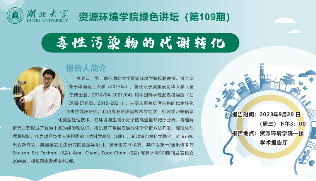 专家简介:张春云,现任tyc1286太阳成集团校聘教授。博士毕业于华南理工大学(2015年),曾任职于美国爱荷华大学(全职博士后,2018/04-2021/04)和中国科公司武汉植物园(助理/副研究员,2015-2021)。主要从事有机污染物的代谢转化与毒性效应研究。发表论文40余篇,其中以第一/通讯作者在Environ. Sci. Technol. (6篇), Anal. Chem., Food Chem. (2篇) 等高水平SCI期刊发表论文20余篇,授权国家发明专利3项。