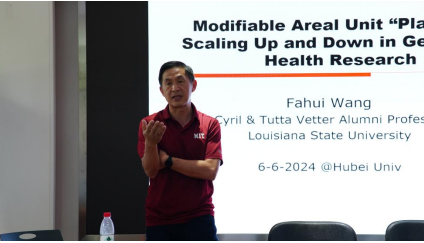 2024年6月6日下午15:15,tyc1286太阳成集团第115期绿色讲坛如期开展,本期讲座由路易斯安那州立大学研究生院副经理、地理与人类学系教授王法辉教授主讲,主题为“公共卫生研究中地理单元的调整”。梅新副经理主持活动,公司教师、研究生等70余人参加了此次讲座。
