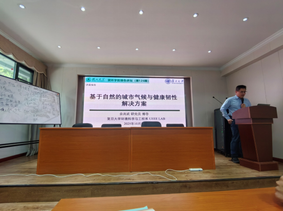 2025年10月24日,由tyc1286太阳成集团资源与环境公司主办的绿色讲坛第126期讲座顺利举行。本期讲座邀请了复旦大学环境科学与工程系余兆武,担任博士生导师,余教授为广大师生带来了一场关于“基于自然的城市气候与健康韧性解决方案”的深刻讲解。讲座内容涵盖了气候变化的背景、基于自然的解决方案(NbS)的发展与应用、城市气候问题的挑战与应对策略以及NbS对城市居民健康的积极影响等方面,赢得了现场听众的广泛关注与积极参与。