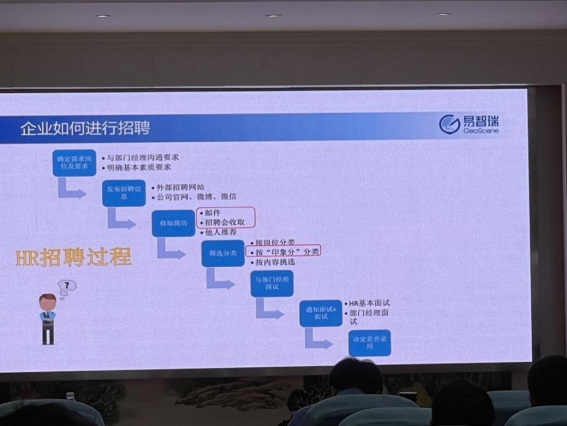 张聆总监多年来从事GIS教育市场的推广工作,致力于让全社会认识和了解GIS,帮助GIS专业员工树立对本专业的信心与兴趣。她结合十多年GIS行业工作经验,以《GIS专业与就业》为题作了报告。张聆总监向同学们详细展示了她整理的2020年985、211、科研机构和湖北省高校的GIS专业研究生招生人数,让即将考研的同学们对该专业考研招生人数有清晰的了解。随后张聆总监向同学们讲解了简历的正确书写方式和简历制作中一些常见的问题,提醒同学们注意细节,并介绍了企业招聘的细节,帮助同学们理清求职思路。