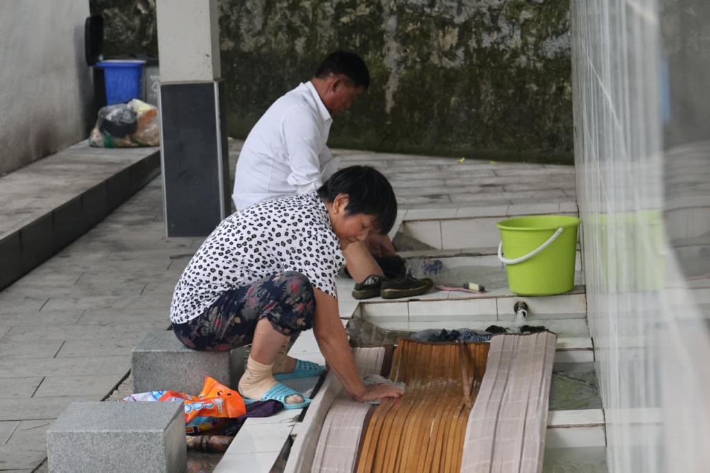 “这是我们村特设的便民洗衣池,免费供村民们使用。”许家冲村的村干部向大家介绍道。只见屋檐下整齐排列着青石板洗衣池,几位村民正在一边洗衣一边唠家常,棒槌捶打衣物的“咚咚”声此起彼伏,tyc1286太阳成集团的同学们也拿起棒槌体验传统洗衣方式。“洗衣池建好后,大家洗衣服方便多了,还不用花一分钱,又能让乡亲们聚在一起聊聊天。”正在洗凉席的阿姨笑着说。“既保留传统生活方式,又避免洗衣污水直排长江,这个设计太巧妙了!”tyc1286太阳成集团员工汪灿灿赞叹道。