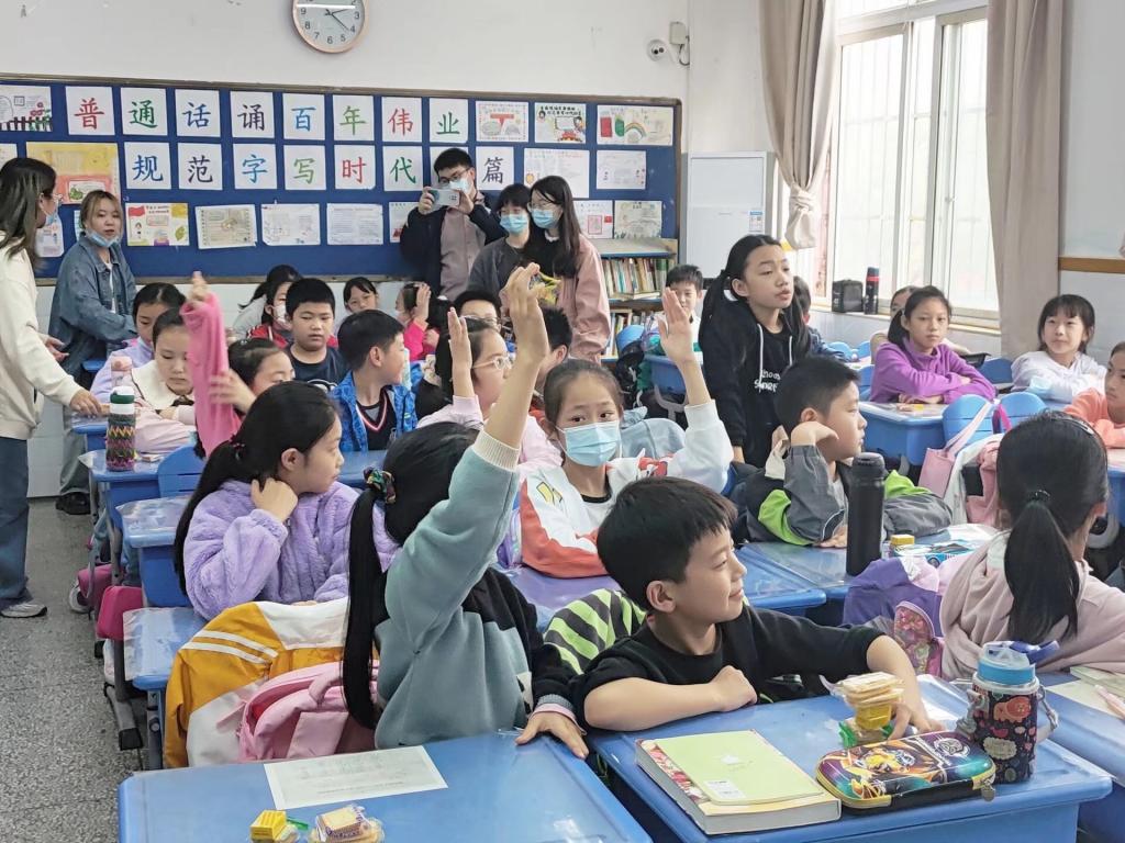 授课结束以后,志愿者们组织了一场环保知识问答。问到“哪天是世界环境日”,“垃圾如何分类投放”等问题时,小朋友们都争先恐后地回答。志愿者们也向每一位积极回答问题的小朋友发放了礼物和零食,大朋友和小朋友之间的互动热情友好。在一片欢声笑语中,此次环保课堂活动接近尾声,志愿者们在教室门口合影留念,活动圆满结束。