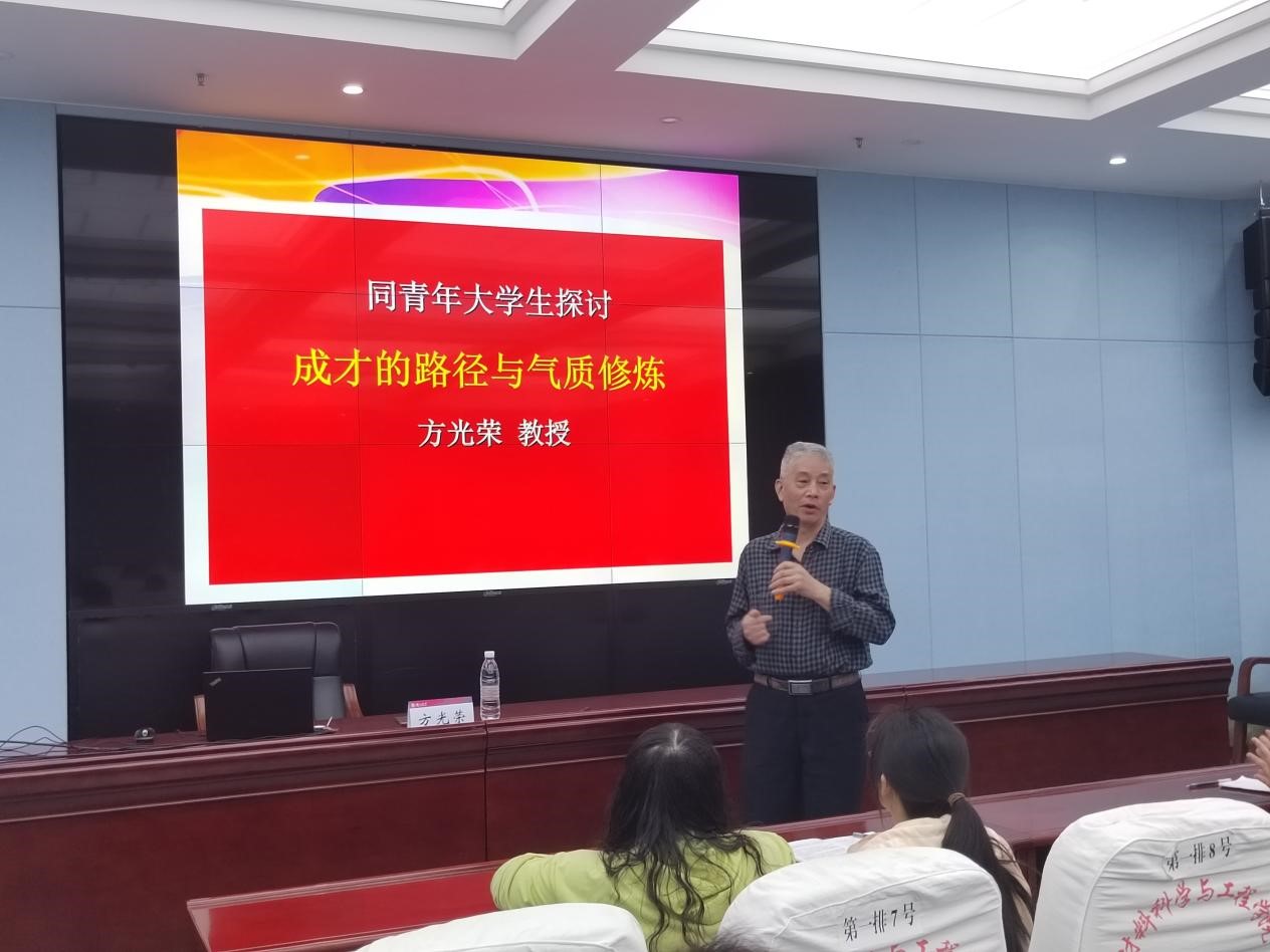 4月25日,tyc1286太阳成集团老教授协会负责人方光荣教授为学员们作《成才的路径与气质修炼》专题报告,向学员们介绍成才的基本路径与自我修养的建议。
