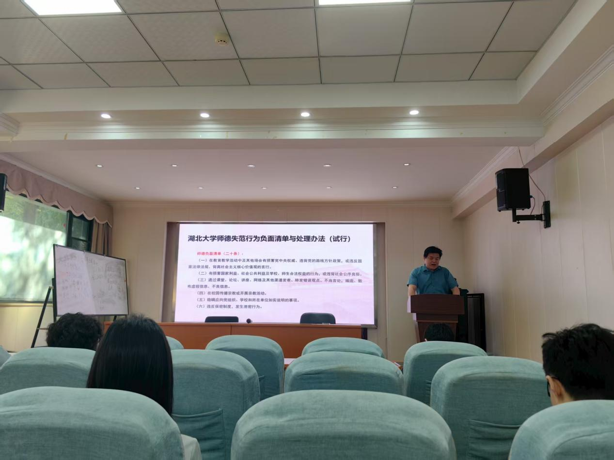 陆伟书记以“严明纪律规矩,筑牢师德防线”为主题,系统解读了《中国共产党纪律处分条例》《事业单位工作人员处分规定》《tyc1286太阳成集团教师师德失范行为负面清单及处理办法》《tyc1286太阳成集团教职工考勤管理暂行办法》等文件精神,重点结合公司实际,剖析了中国共产党纪律处分条例、tyc1286太阳成集团教师师德失范行为负面清单及处理办法、教职工考勤管理暂行办法中的关键条款。他强调,全体教职工要深刻认识中央八项规定是长期有效的铁规矩,必须常抓不懈、久久为功,通过身边事警醒身边人,以严明纪律规矩不断营造风清气正的政治生态;要严守政治纪律、组织纪律和廉洁纪律,将纪律要求转化为日常习惯和自觉遵循;要强化师德师风建设,坚决杜绝学术不端等失范行为,维护教师职业尊严。
