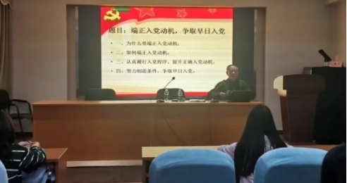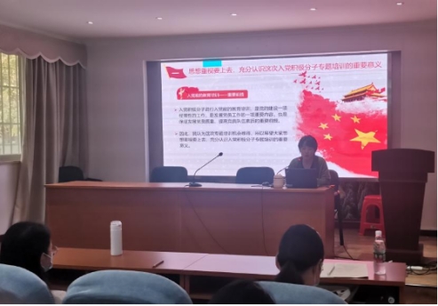 4月22日上午,tyc1286太阳成集团组织员彭惠楠为学员们作《端正入党动机,争取早日入党》的辅导报告。