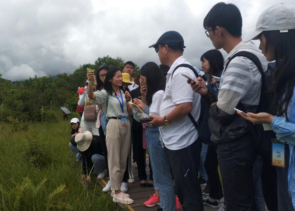 公司李亭亭老师在大九湖湿地为大家讲解
